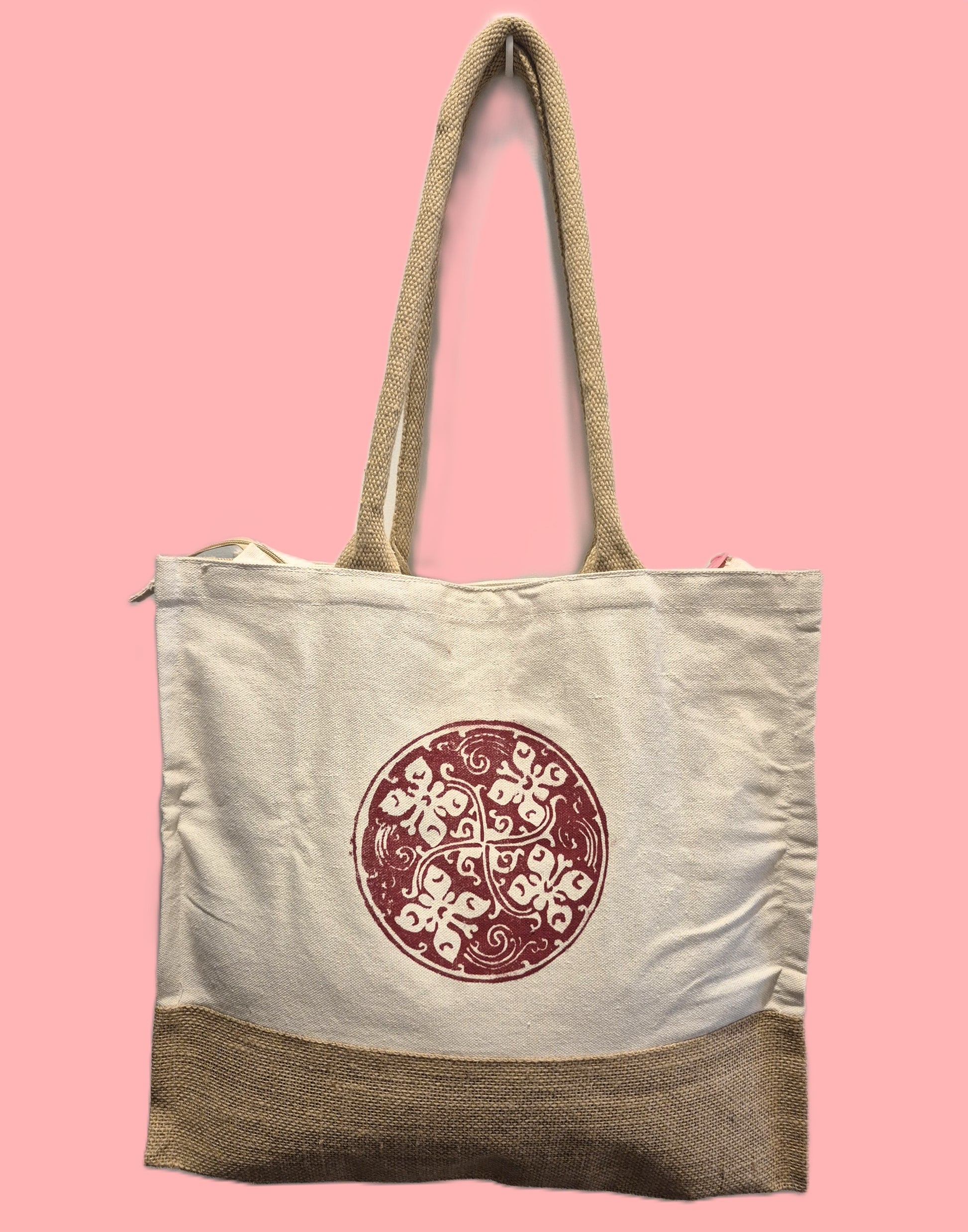 Carry eco-style everywhere with this cotton and jute tote bag featuring a quirky printed designs. The blend of natural cotton canvas with a sturdy jute base makes it both stylish and durable. Its spacious interior and strong woven handles make it perfect for everyday use whether for shopping, work, beach, or travel. A sustainable alternative to plastic, this tote is as functional as it is fashionable.